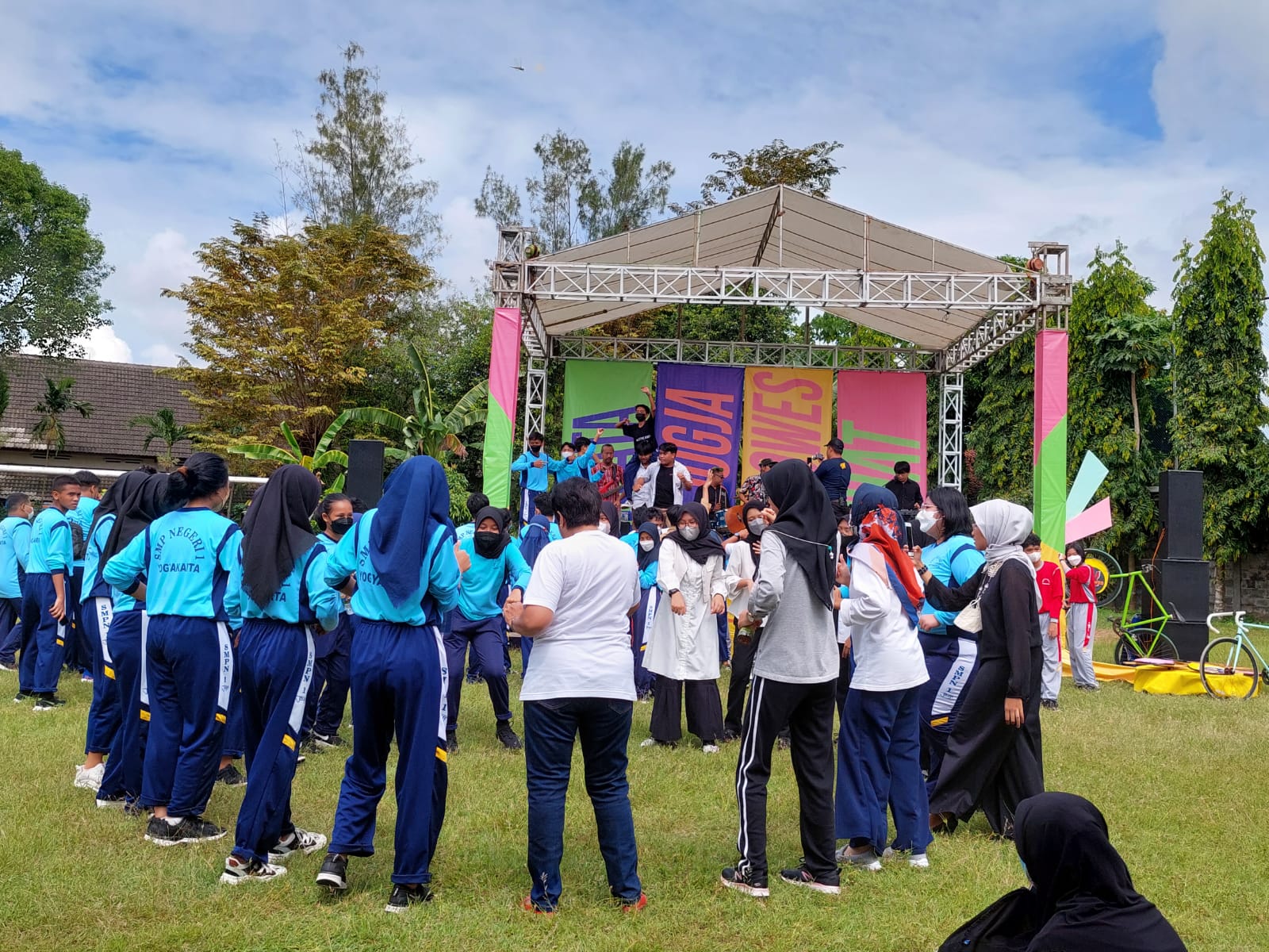Acara diawali dengan gowes bersama yang dibuka oleh Kepala Dindikpora Bapak Budi Santosa Asrori, S.E., M.Si. Pak Budi beserta Sekretaris Dindikpora Ibu Dra. Tyasning Handayani Shanti beserta jajarannya juga ikut nggowes bersama pelajar, guru dan karyawan, serta komunitas pesepeda. Usai nggowes, dilanjut dengan senam bersama di lapangan SMPN 1 Yogyakarta. Setelah senam, dilanjutkan dengan gelar ekspresi pelajar SMPN 1 Yogyakarta. Acara yang dikoordinatori Kasi Pemuda dan Olahraga Bp Mugi Suyatno bekerja sama dengan SMPN 1 Yogyakarta berlangsung meriah dan sukses. Anak-anak sangat gembira dan antusias. Maklum sudah dua tahun mereka tidak dapat berkegiatan outdoor seperti ini lantaran pandemi. Kegiatan ini menjadi ruang berekspresi dan berkreasi, menumbuhkan semangat nasionalisme, kerja sama, kemandirian, dan yang jelas menyegarkan jiwa raga.