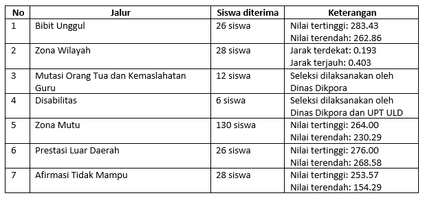 Yogyakarta-Rangkaian Penerimaan Peserta Didik Baru (PPDB) SMP Negeri 1 Yogyakarta tahun pelajaran 2022/2023 terselenggara dengan lancar mulai tanggal 10-24 Juni 2022. PPDB menggunakan sistem Real Time Online (RTO) sehingga dapat dipantau secara langsung oleh calon peserta didik. Proses verifikasi dan daftar ulang dilaksanakan secara tatap muka dengan menerapkan prokes di Lobby dan GOR SMP N 1 Yogyakarta. Tahun ini SMP N 1 Yogyakarta menerima sebanyak 256 peserta didik baru dengan rincian sebagai berikut: