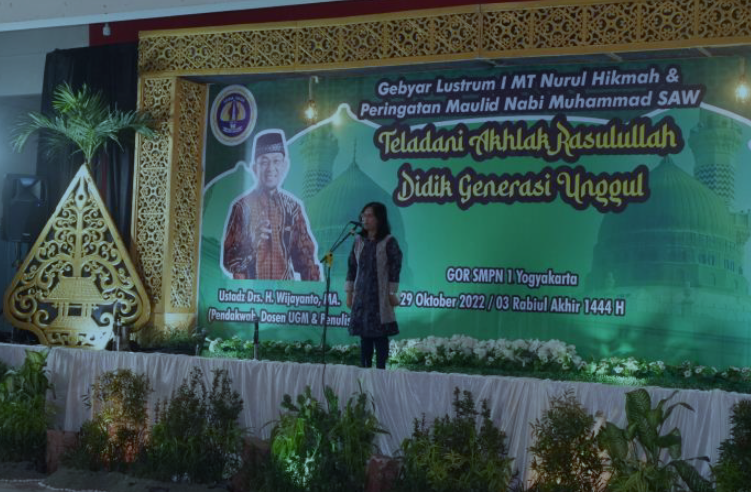 Sabtu, 29 Oktober 2022, Majelis Taklim Nurul Hikmah SMPN 1 Yogyakarta menggelar acara Milad ke-5 sekaligus Lustrum ke-1. Acara dimulai pukul 09.00 WIB bertempat di GOR Satria Siaga SMPN 1 Yogyakarta. Pada lustrum yang pertama ini, acara dimulai doa pembukaan disusul dengan sambutan oleh ketua panitia kemudian kepala sekolah Ibu Y. Niken Sasanti. Acara dilanjutkan dengan penyerahan bantuan sosial kepada murid SMPN 1 Yogyakarta yang membutuhkan.