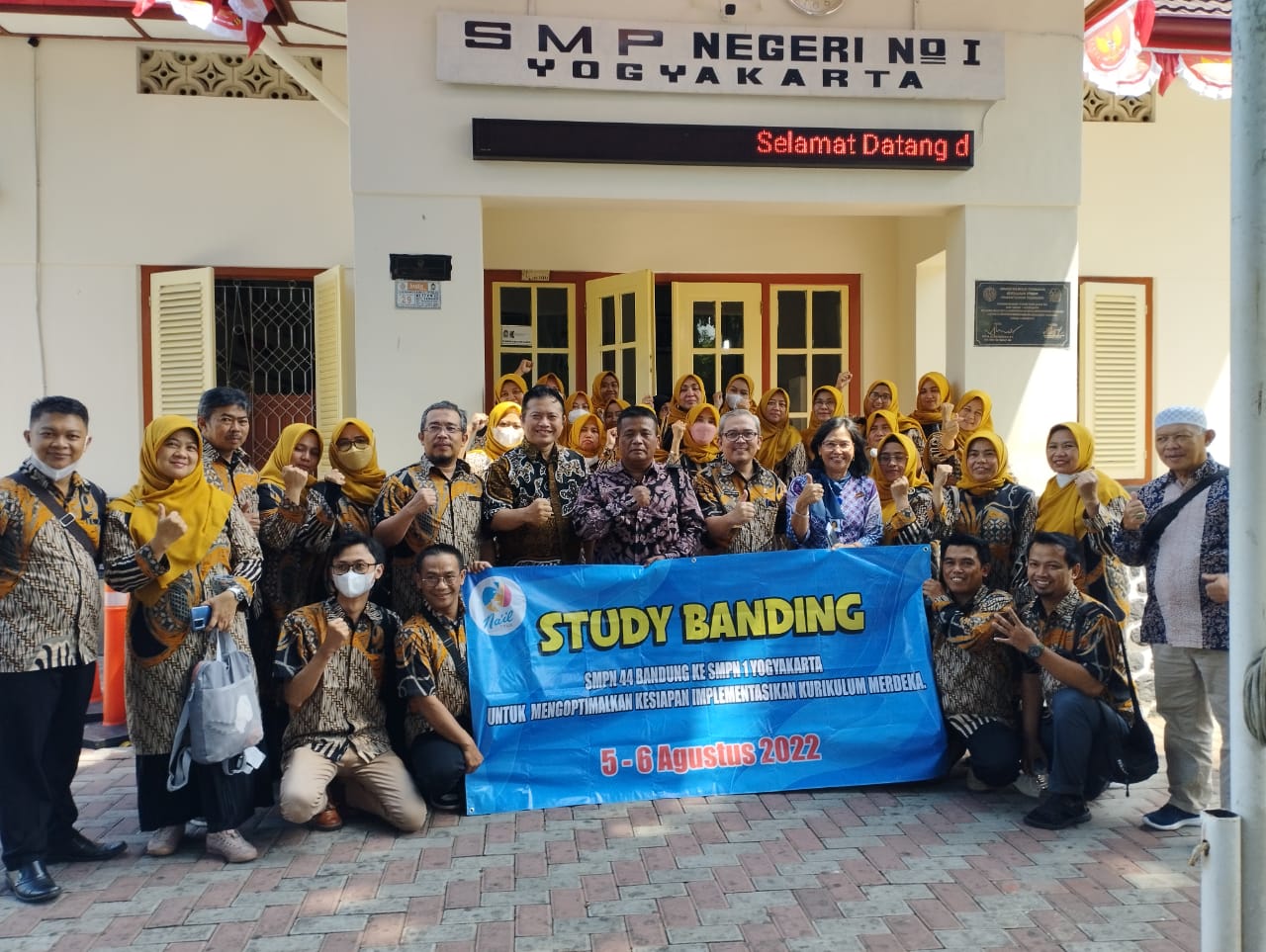 SMP Negeri 1 Yogyakarta mendapatkan kunjungan dari SMP Negeri 44 Bandung pada hari Jumat, 5 Agustus 2022. Kunjungan tersebut bertujuan untuk diskusi terkait Implementasi Kurikulum Merdeka (IKM) di SMP Negeri 1 Yogyakarta.
